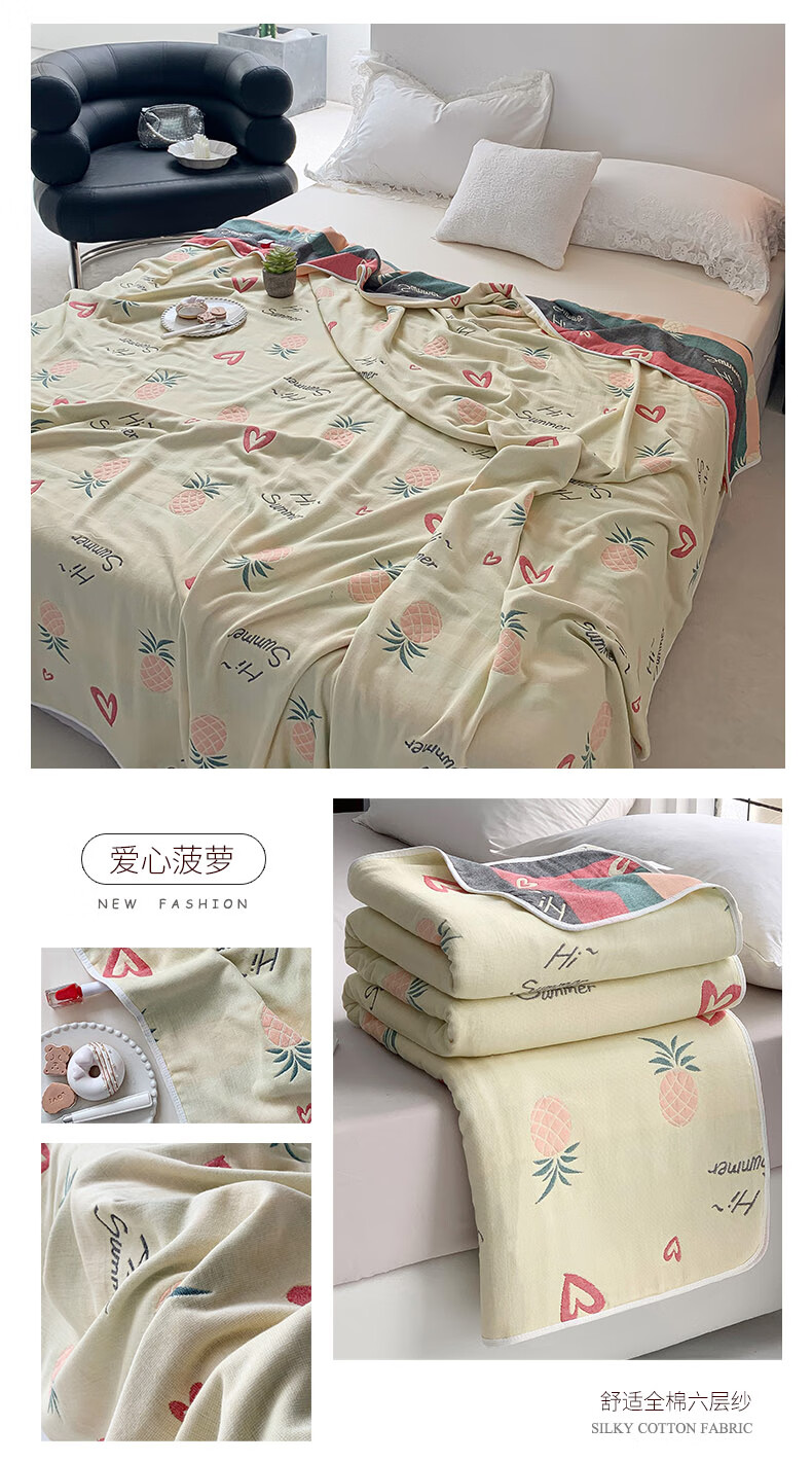 Huahengyu 6-layer gauze towel, cotton blanket, kindergarten baby blanket, single person summer cool blanket, baby children's nap air conditioning blanket, pink rabbit 90 * 100cm single cover blanket [image price brand quotation]-