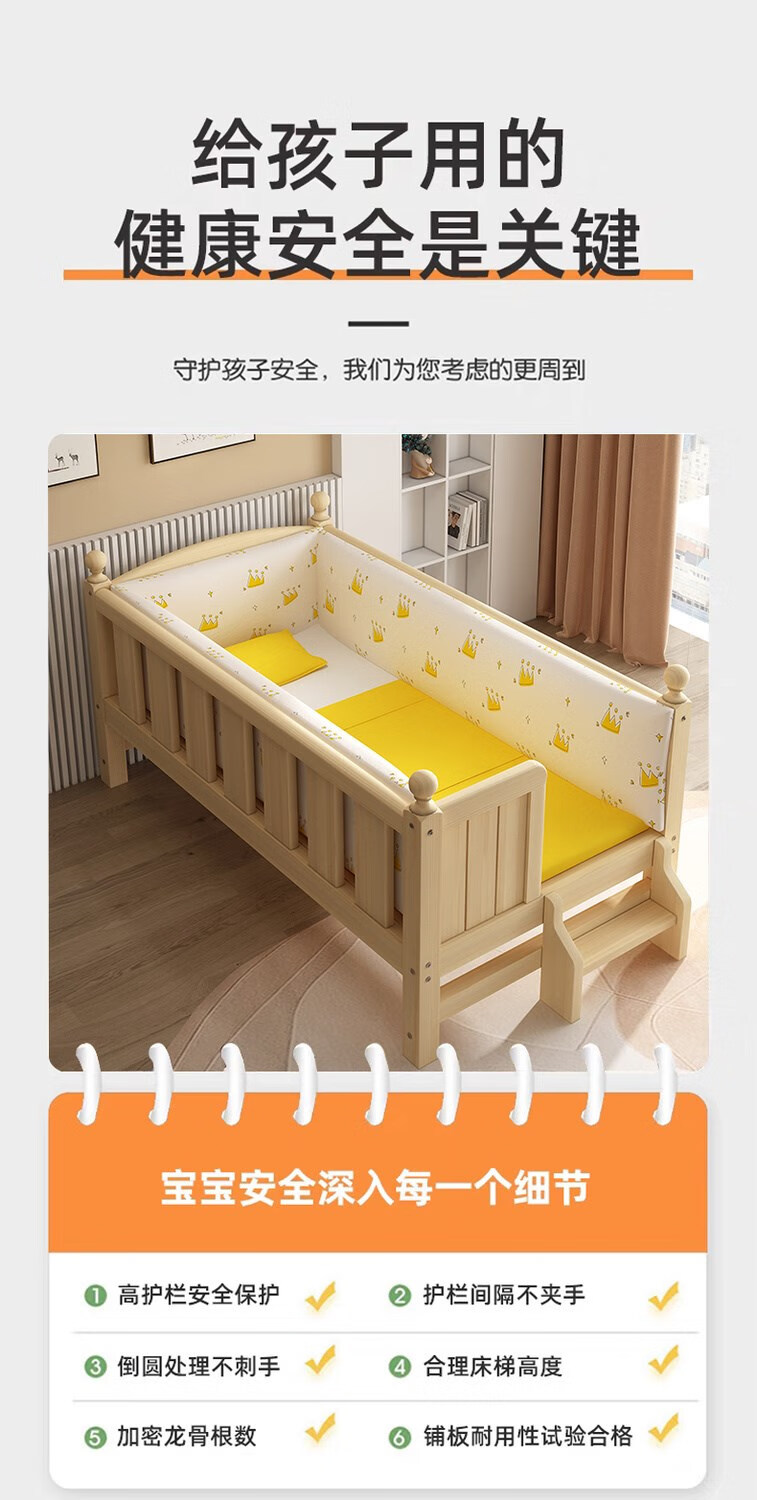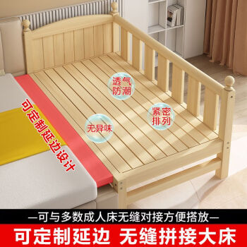 QUANU Solid Wood Children's Crib with Storage and Broadband Safety Extended Edge Boys and Girls' Bedside Children's Bed Splice Big Bed Customizable [Customized] Headrest Safety Extended Edge Length 120 * Width 50 * Height 40 Plus Height [Image Price...