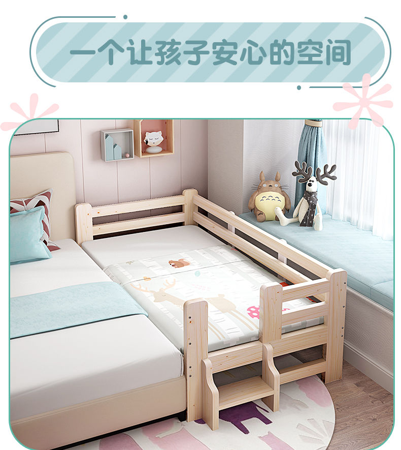 Children's bed sheet, double bed, princess bed, Baby Crib splicing, king bed, widened Crib with storageConvertible Crib, boys and girls' small bed, with a head length of 200 * width of 90 * height that can be customized [Image price and brand quotati...