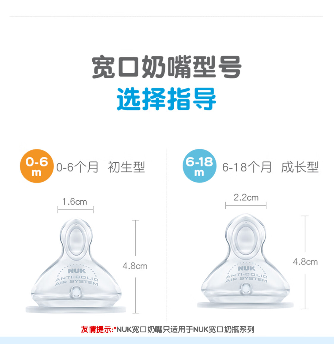 NUK Wide Bore Natural Feel Nipple Neonatal Silicone Nipple 0-6 Months Round Hole (Two Pack)
